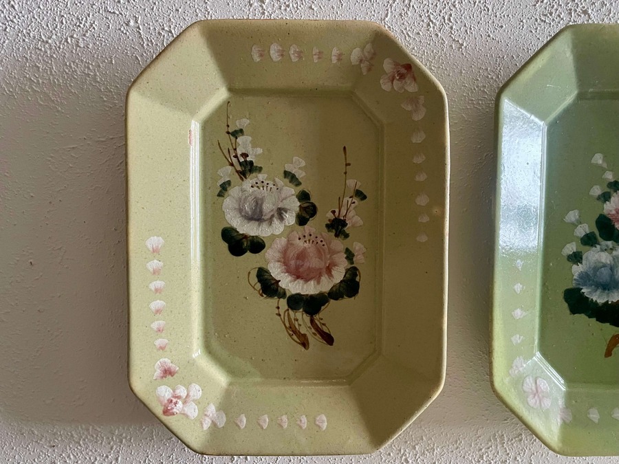 ベトナムのダラットの田園をイメージしたグリーン。優しい絵付けと色斑や掠れが味わい深い一枚。