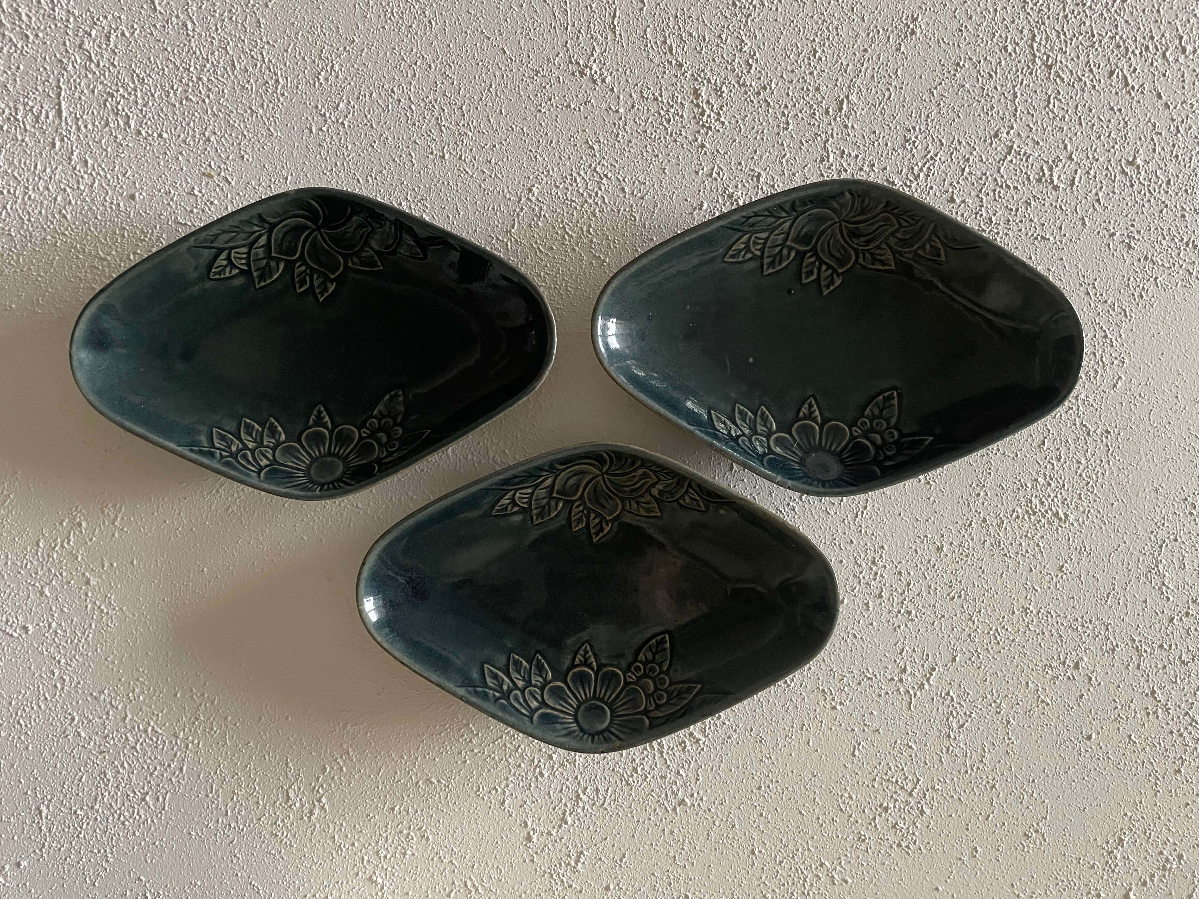 この独特な菱形のフォルムは、丸皿や角皿が並ぶ食卓に程よいリズムを生み出し、