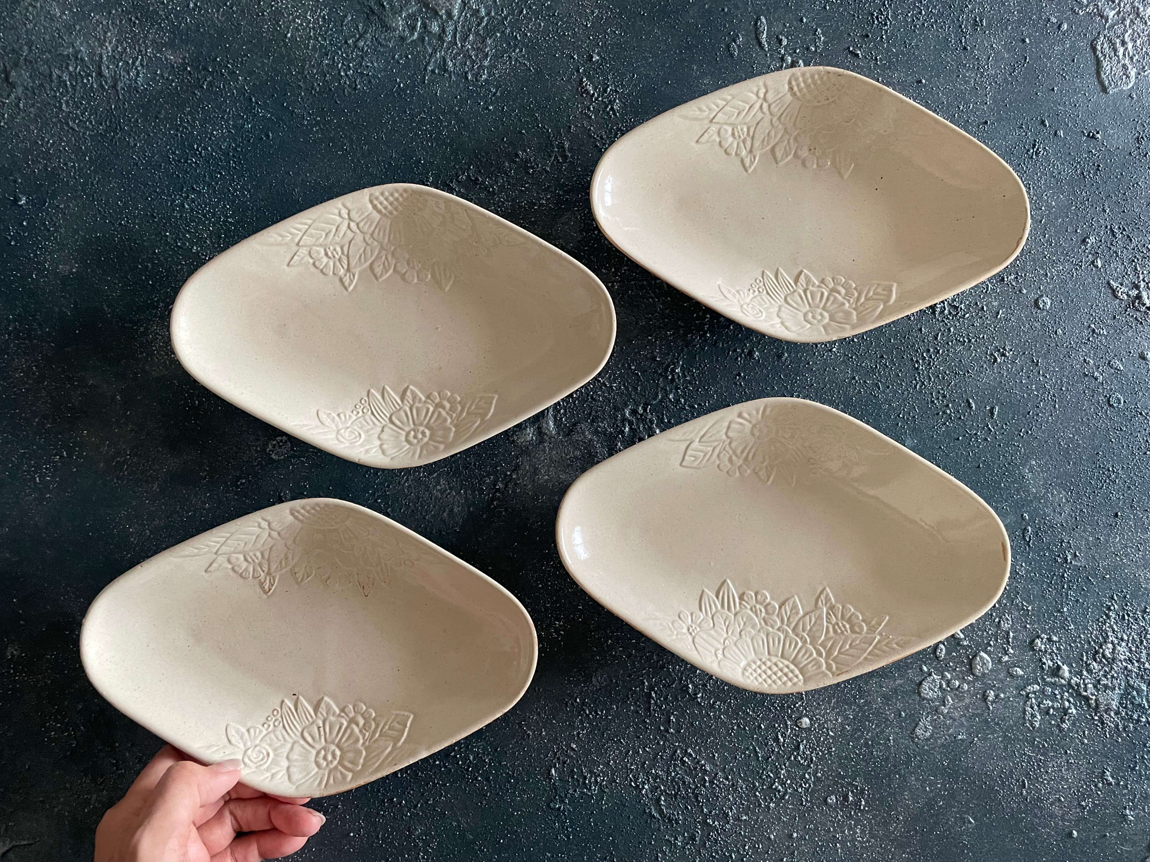 この独特な菱形のフォルムは、丸皿や角皿が並ぶ食卓に程よいリズムを生み出し、